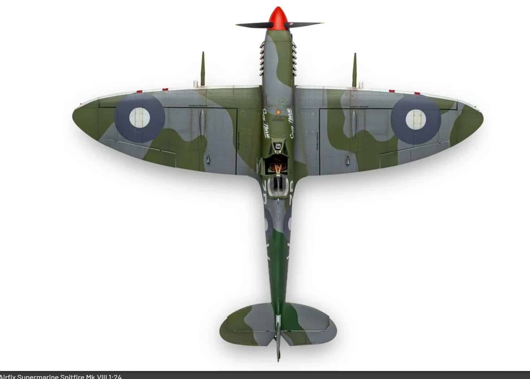 Markeringer i settet inkluderer slike for No. 457 ‘Grey Nurse’ Squadron, Royal Australian Air Force, som var kjent for å male sine Spitfires med distinkte haiekjefter.