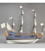 Denne treskipmodellen er en detaljert replika av ‘Soleil Royal’, det majestetiske franske krigsskipet fra Louis XIVs tid. Modellen er i 1/72 skala og kommer som et byggesett i tre, perfekt for både nybegynnere og erfarne modellbyggere.